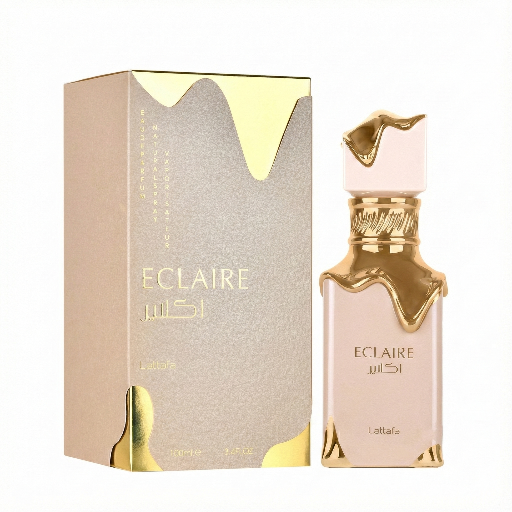 Eclaire de Lattafa Perfumes es una fragancia floral afrutada y gourmand para mujer. Esta nueva fragancia se lanzó en 2024. Sus notas de salida son caramelo, leche y azúcar; sus notas de corazón, miel y flores blancas; y sus notas de fondo, vainilla, praliné y almizcle.